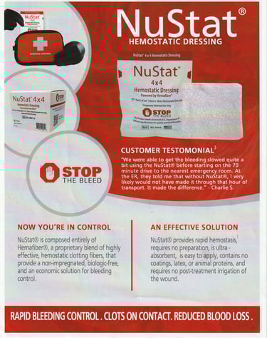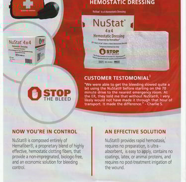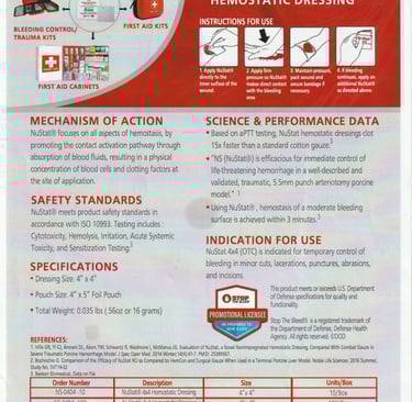 The fastest acting hemostatic gauze, that stops severe arterial bleeding with only 60 seconds compression.