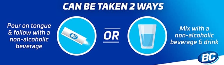 BC's powerful combination of ingredients relieves your pain at the speed of powder. Pour BC Powder on your tongue and follow with a non-alcoholic beverage or mix it with a